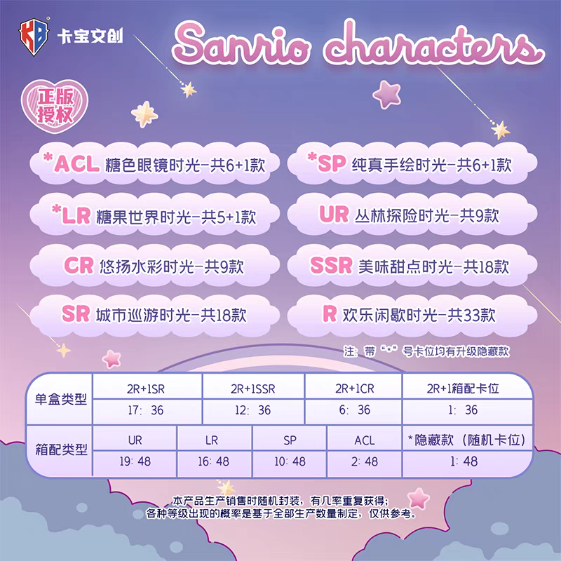 KABAO Sanrio Plan 1 V4 Series Photo cards 1 whole box 36bags 108pcs cards Mystery cards game unboxing bag Flash Cards 1 whole box 20bags 80pcs cards Include Party